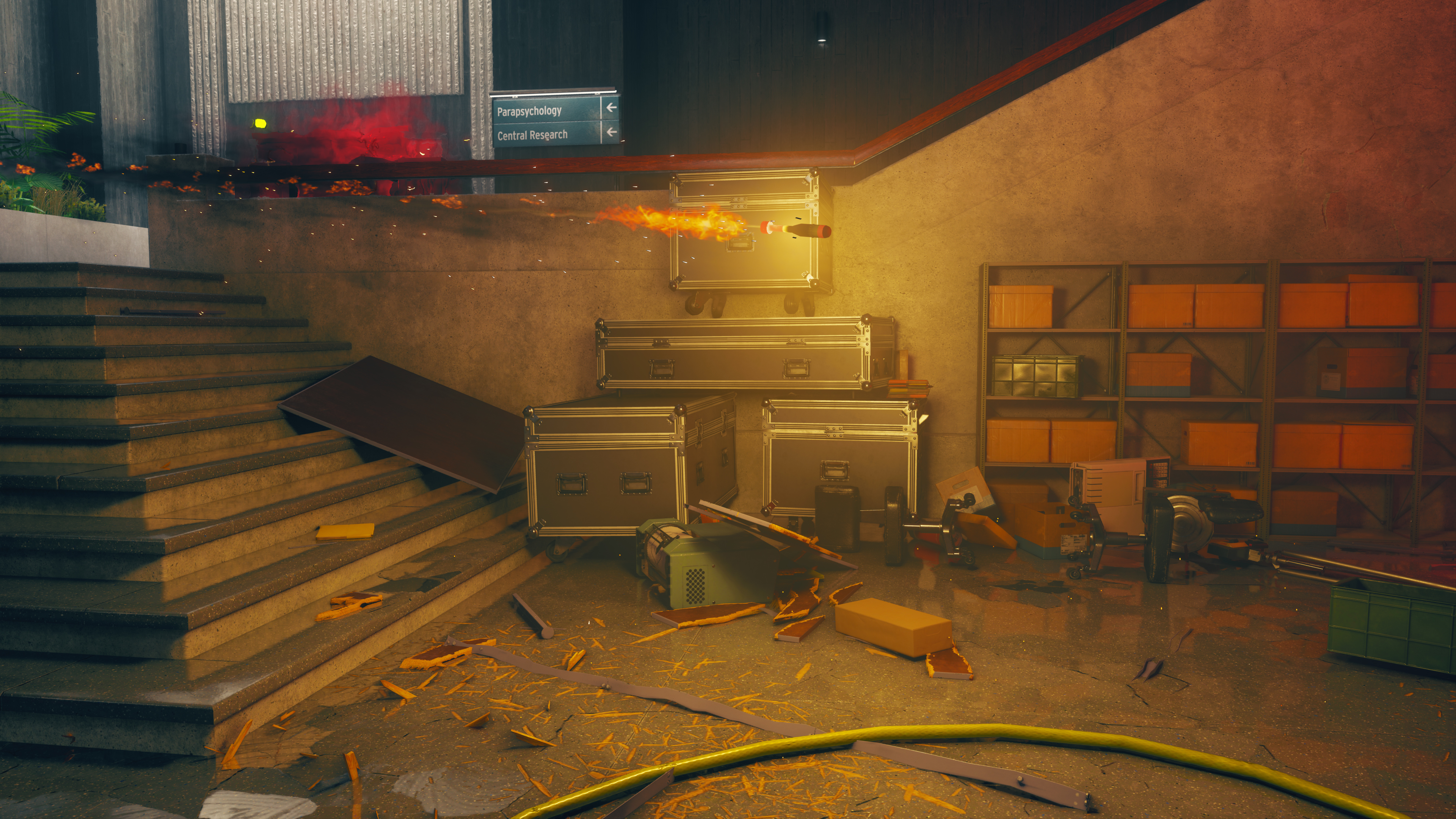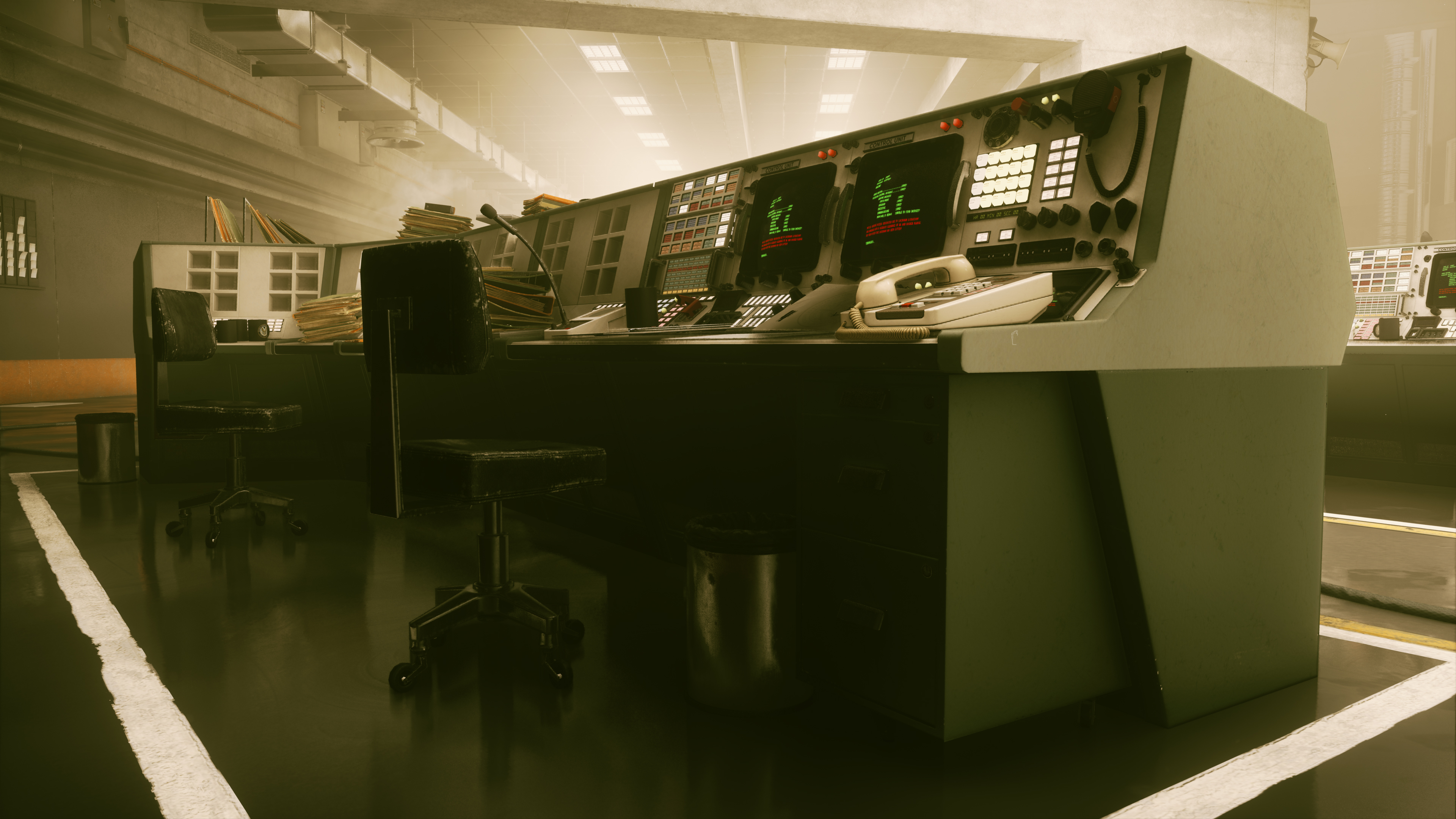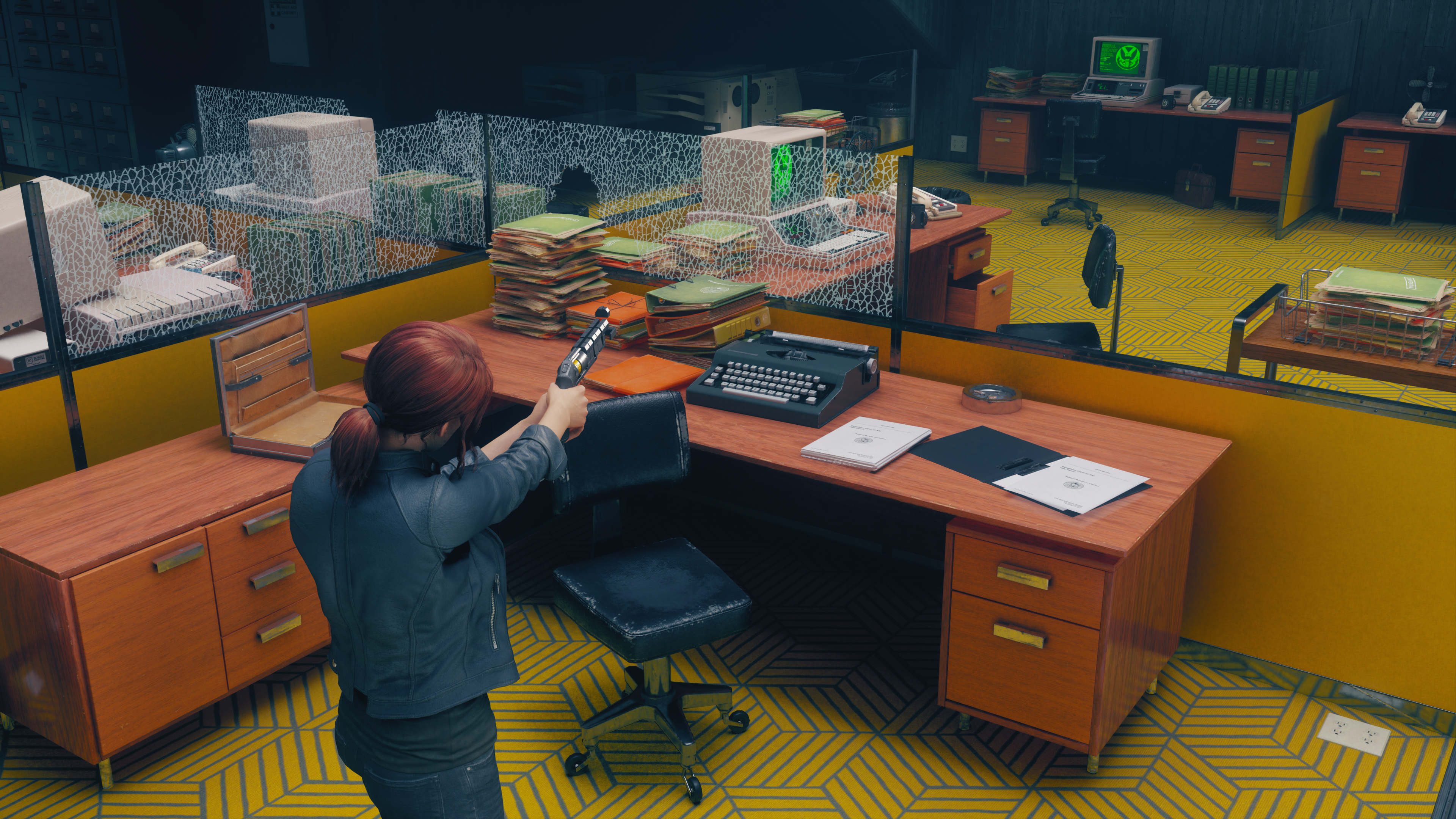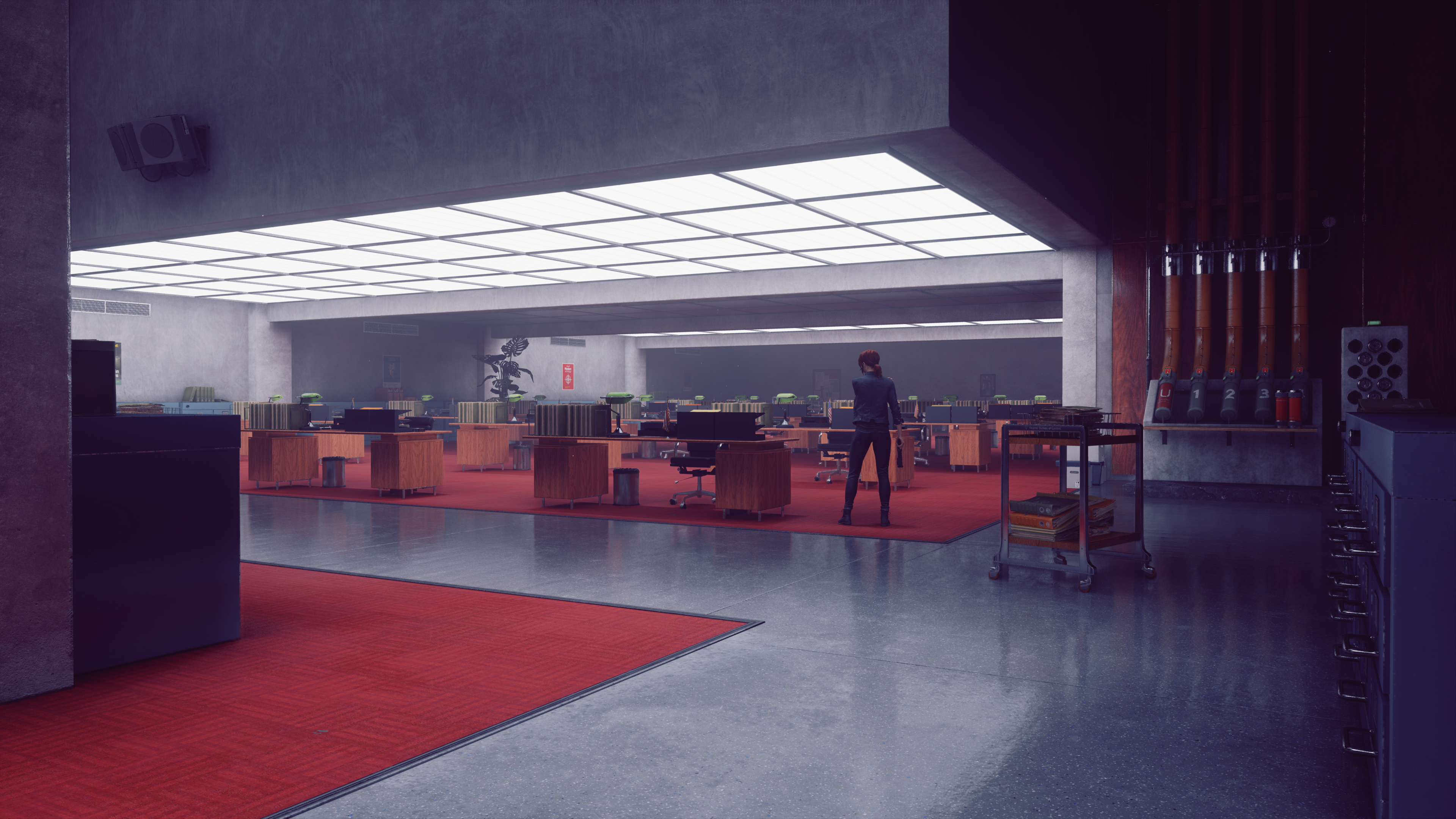 Control's many offices see their stacks of paper, typewriters, computers, binders, and other objects enhanced with new, realistic shadows: