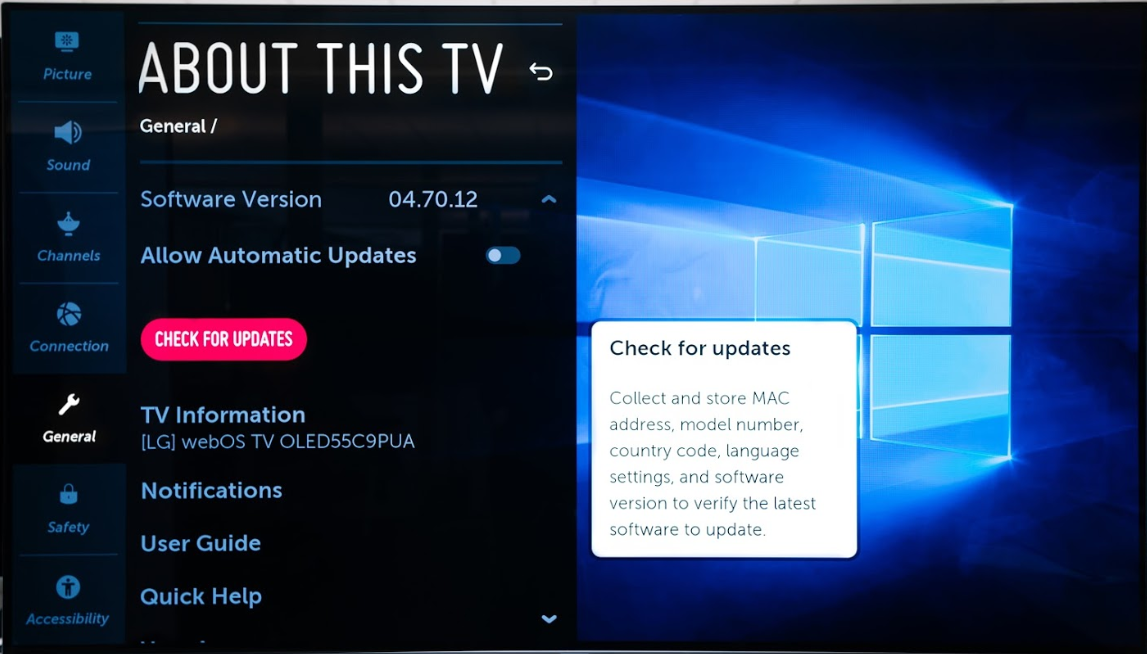 2. Download and install G-SYNC Compatible LG TV firmware: version 04.70.12 for C9 and E9 models, and version 04.70.04 for B9 models. Please note, that as of October 31st, 2019, LG has only released firmware for North America. Firmware for other countries is expected to launch later this year.