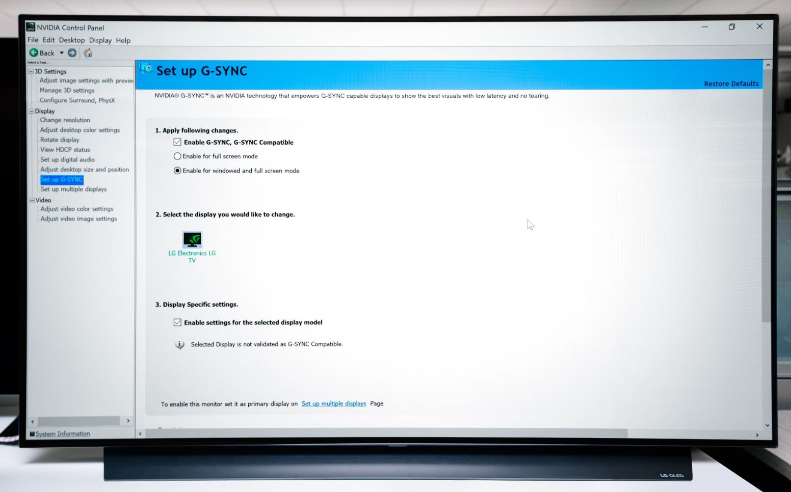 6. On the left nav, select Display > Set up G-SYNC