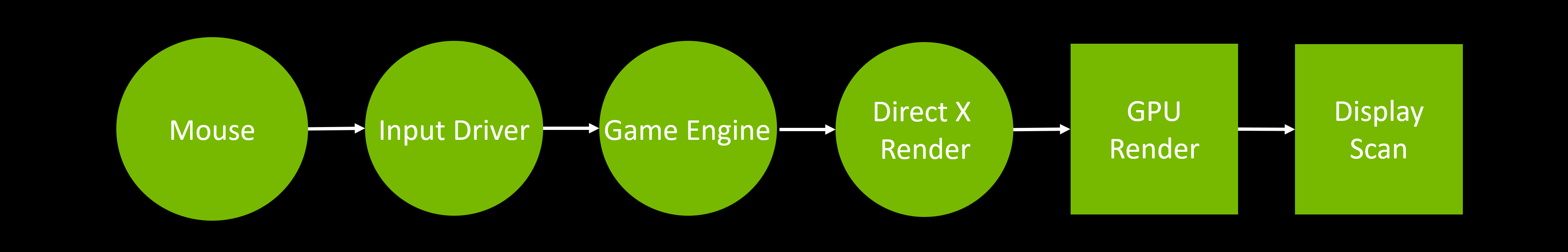 In modern games, “Game Engine”, “Direct X Render” and “GPU” all have the same latency. The faster your GPU, the less time these three processes take, and the faster you will see updated images on your monitor to react to. Hence, your GPU is the most important element to lower latency. Below, you can see how the end-to-end latency of a system changes depending on the GPU.