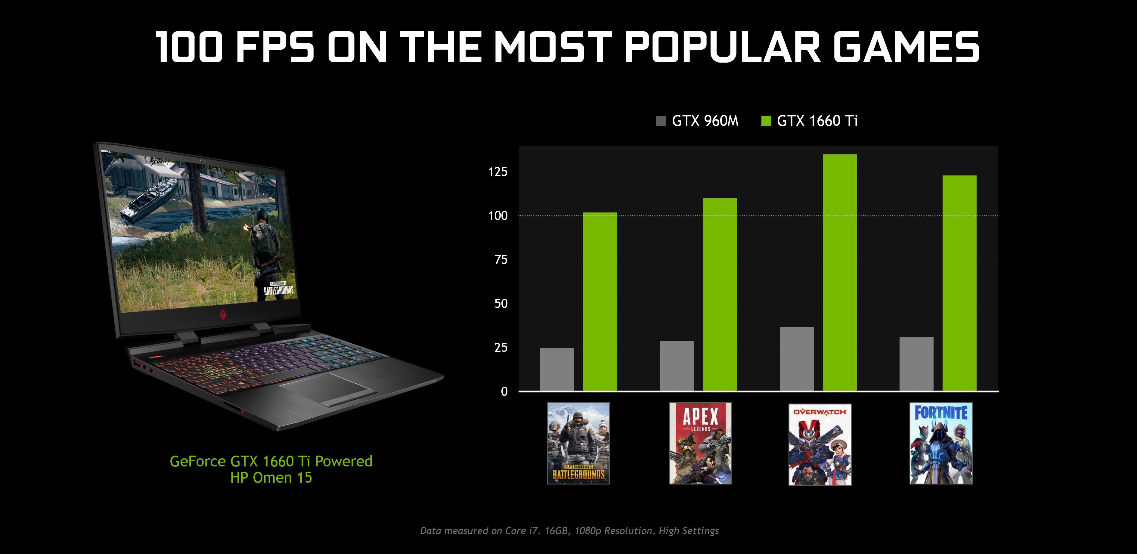 GTX 16-Series laptops run at 100 FPS+ in the world’s most popular games, at home