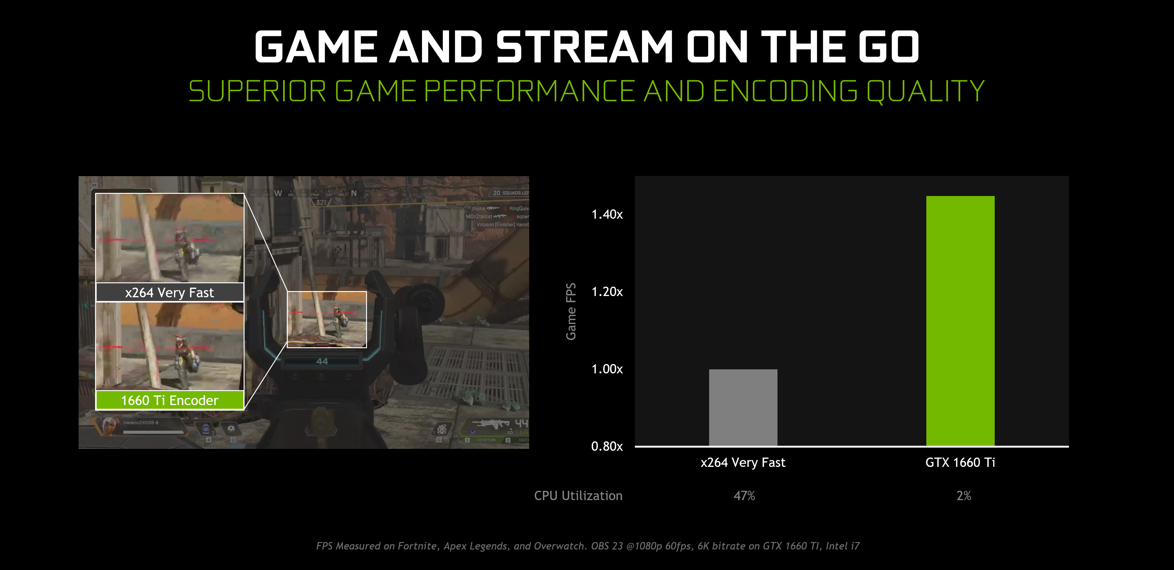 GeForce GTX 16-Series laptops also come equipped with our newest NVENC broadcasting features, enabling you can game and stream from the same system, without compromise, which was previously impossible given the demands of live broadcasting. For further details, head here.
