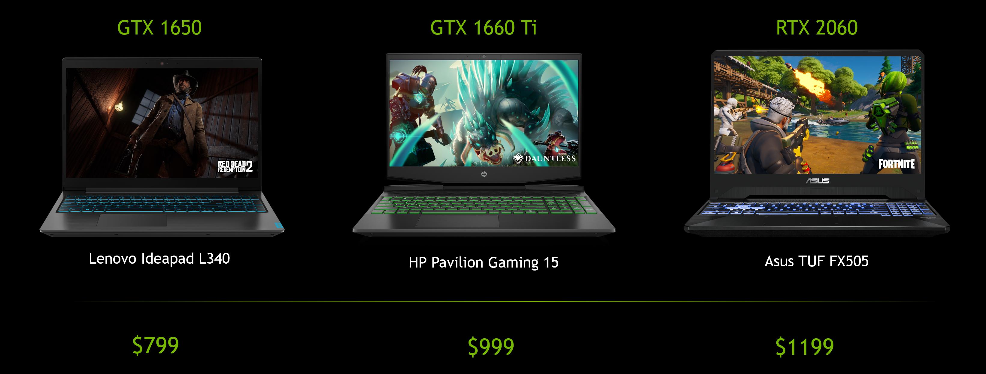 Additionally, GeForce RTX 2060 systems, like ASUS TUF Gaming FX505, start at just $1199, for even more powerful gaming experiences on-the-go.