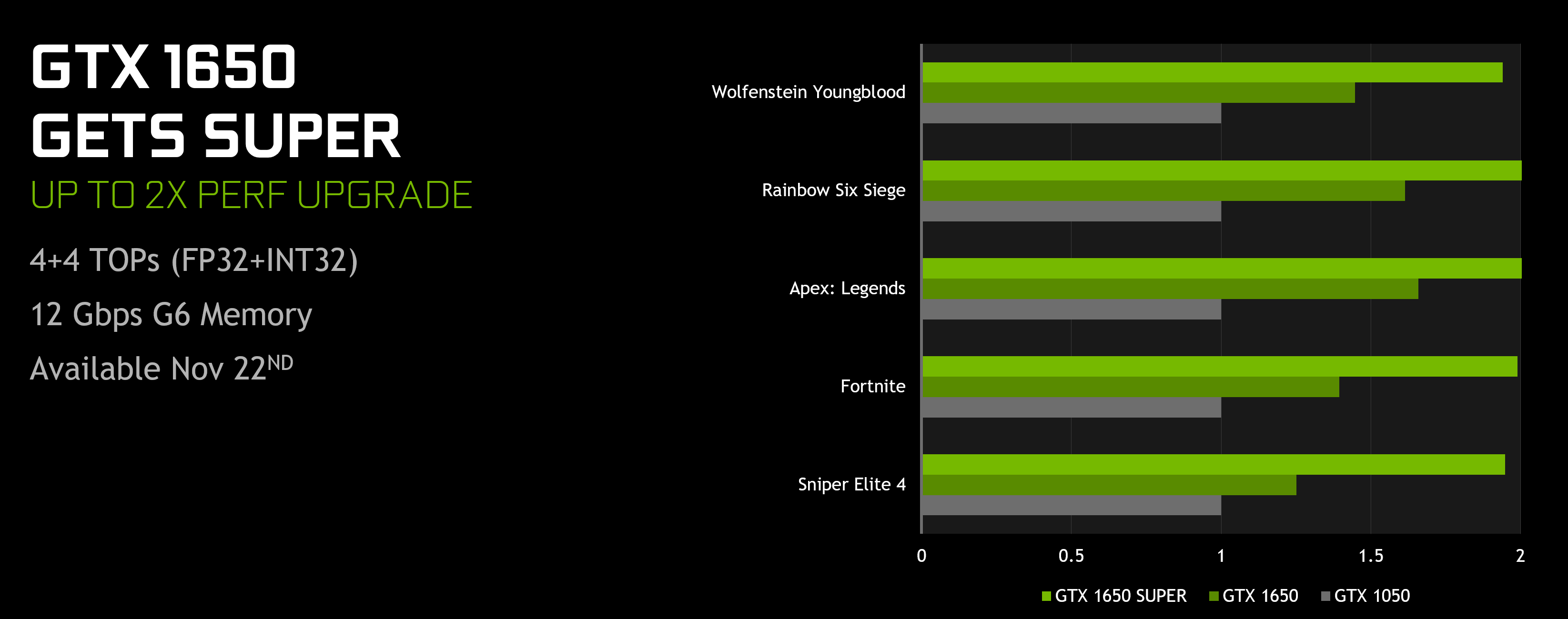 The $159 MSRP GeForce GTX 1650 SUPER is available now, and offers entry-level gamers on a tight budget a significant boost in performance, as well as access to our ecosystem of critically acclaimed NVIDIA technology.
