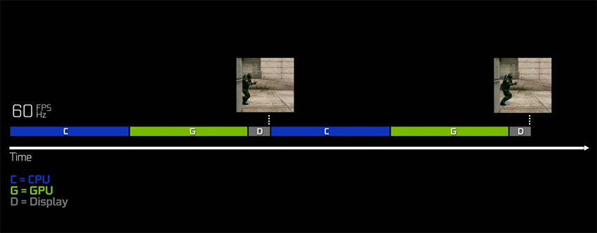 Let’s look at a 60 FPS/Hz pipeline next a 240 FPS/Hz pipeline.