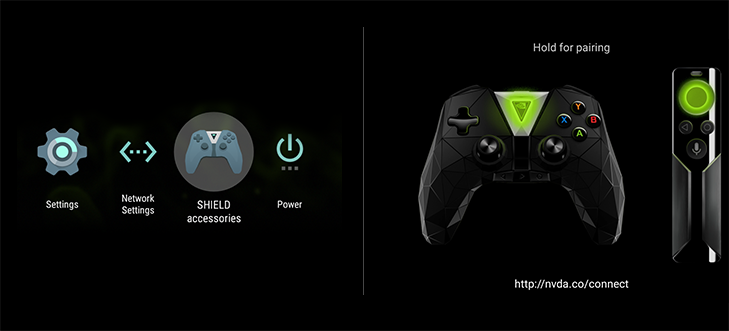Kytke SHIELDTM TV:hen siihen aiemmin yhdistetty ohjain tai kaukosäädin tai uusi ohjain, avaa SHIELD-lisävaruste-sovellus SHIELD TV:n aloitusnäytöstä ja valitse "Yhdistä lisävaruste".