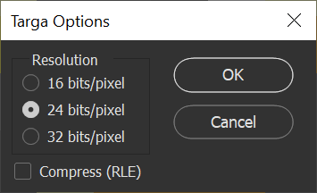 Observação sobre opacidade: você salvará um arquivo .TGA de 32 bits/pixels nesta etapa se o seu objeto não se destina a ser opaco e usa um mapa de opacidade no canal alfa. Veja a seção Mapas de Opacidade acima.