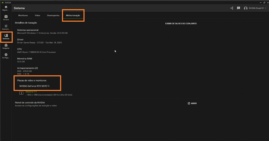 Verifique se a versão mais atual do NVIDIA App está instalada e se você está conectado à internet. É possível fazer download da versão mais atual do NVIDIA App aqui.